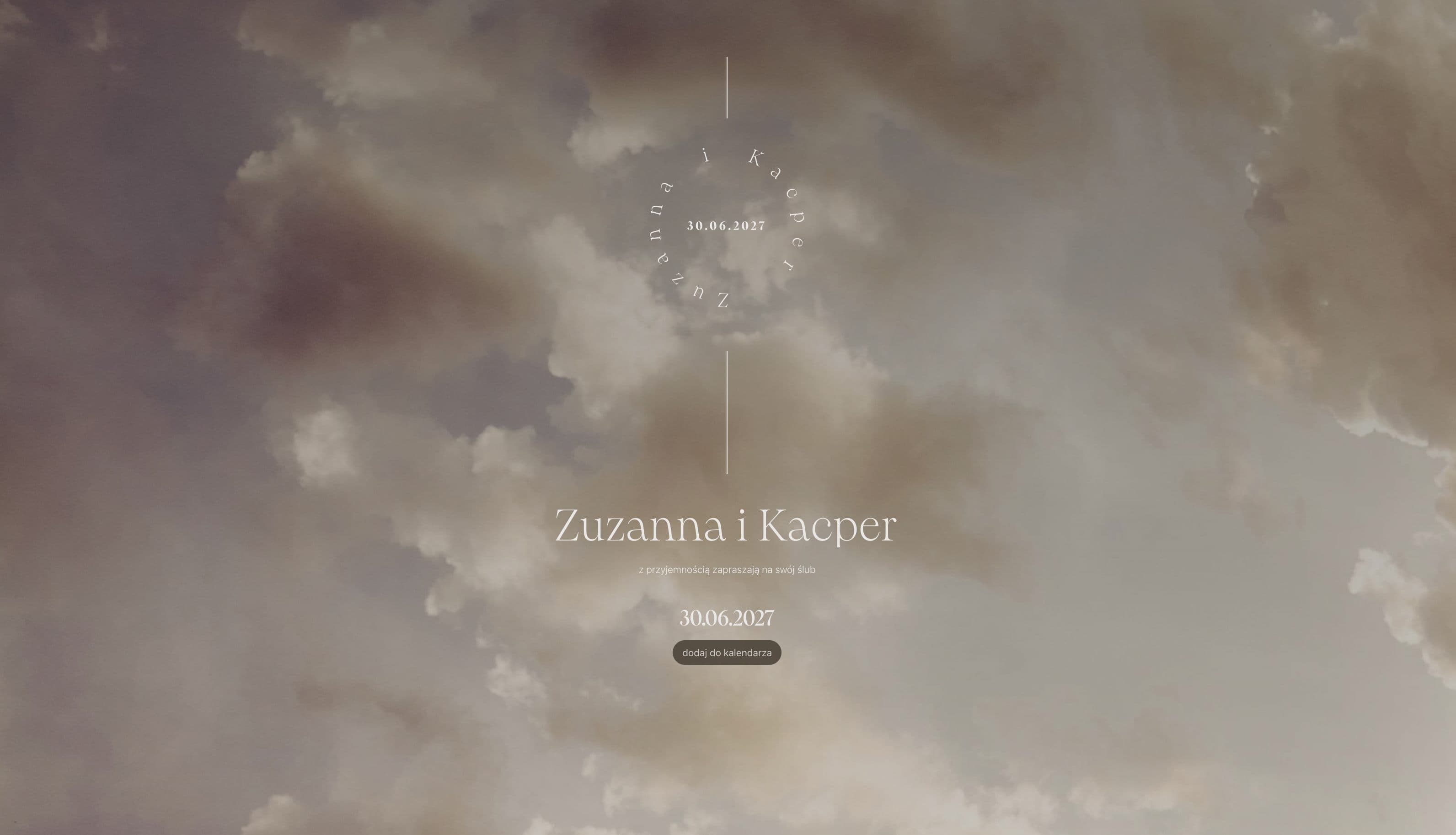 Wpisz datę ślubu i imiona — od razu trafisz do kreatora. Startujesz z gotowym szkieletem strony, który wypełnisz po swojemu.